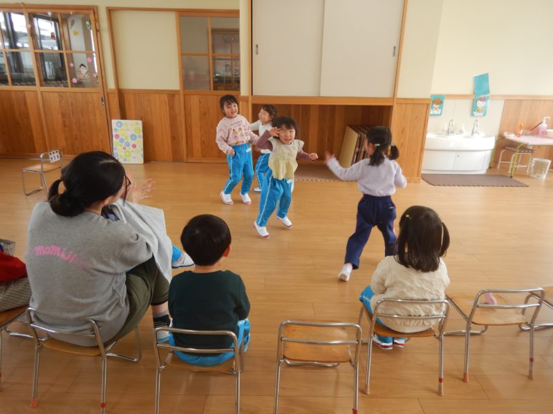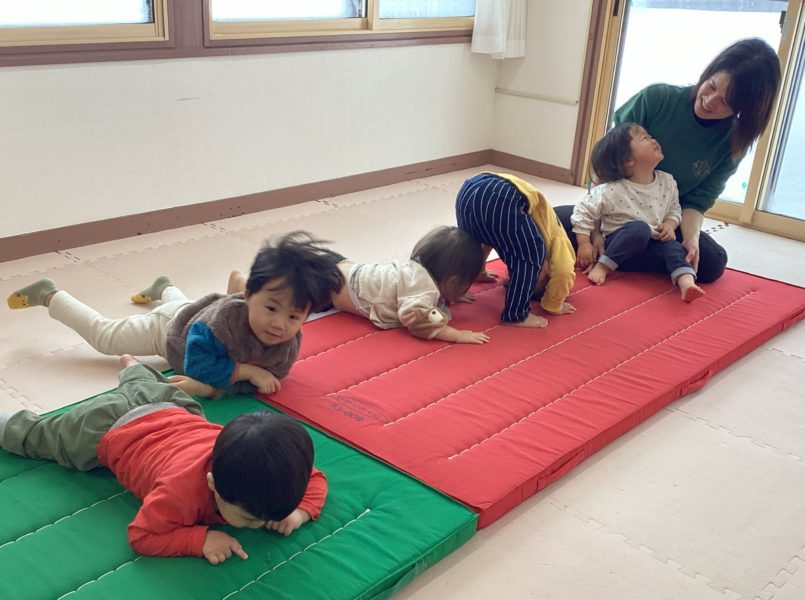 【0.1才児、どんぐり・ひよこ組】お部屋で体を動かしたり、お絵描きをして過ごしました。