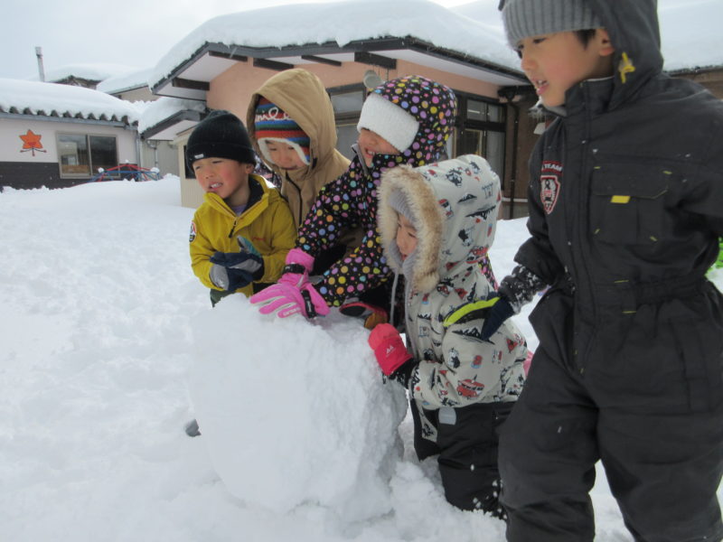 大きな雪玉を転がして~…