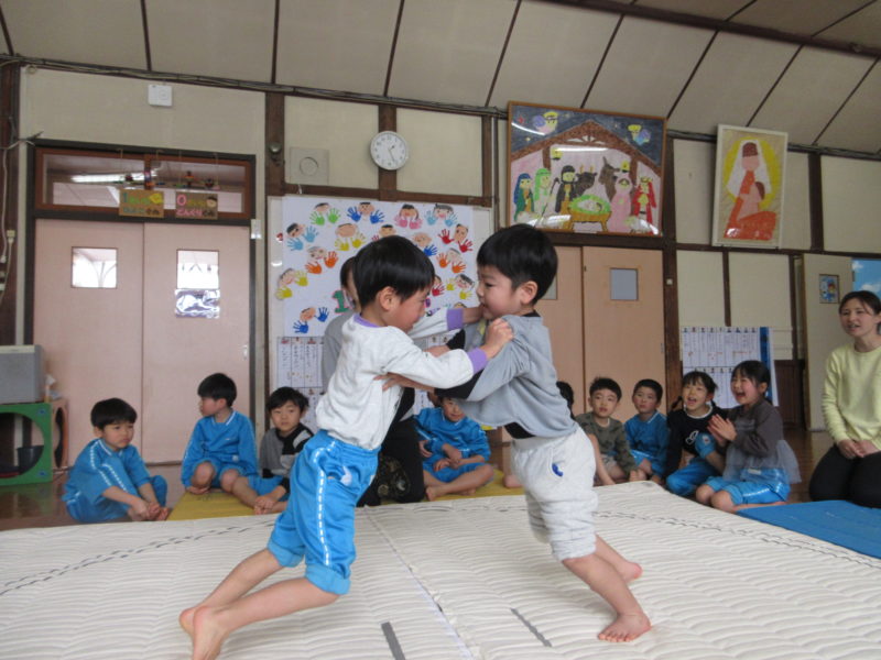 【3才児・さくらんぼ組】午前中はお相撲しました!少しずつ力をつけてきた子どもたち✊