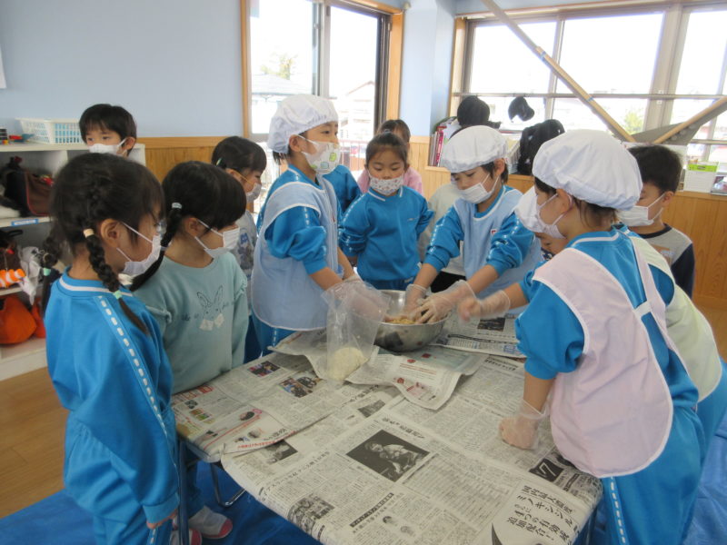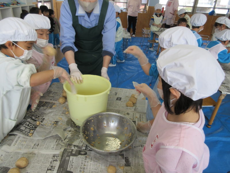 【5才児・ゆり組】恒例行事✨卒園記念として、後輩たちに残す『みそ』作りをしました。本町の杉田味噌屋さんが来園し、毎年優しく丁寧に教えてくださいます。