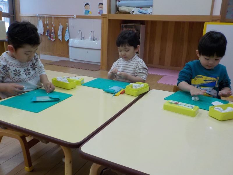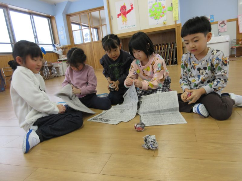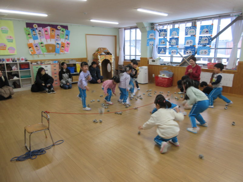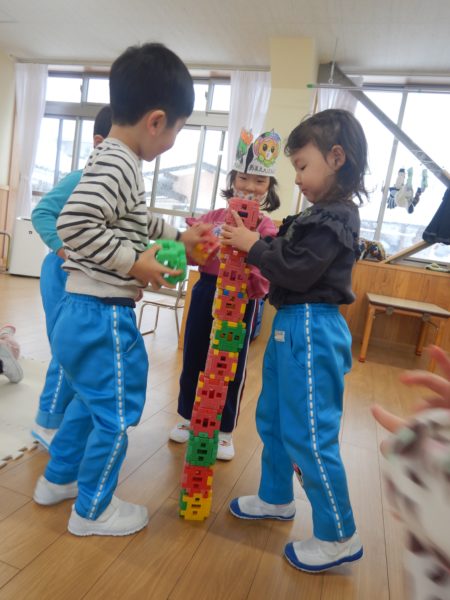 2026年1月29日 / 最終更新日 : 2026年1月29日 momiji-site とことん日記 今日の様子 【4才児・ひまわり組】保育参観2日目でした。 みんなでじゃんけん列車!最後は一列の長~い列車の完成✨ 続いて、豆まき合戦!相手の陣地に素早く豆を投げ入れろ🔥 昨日の参観で制作したお相撲ののぼり旗です。これからもお相撲頑張るぞー! 【5才児・ゆり組】 先生とお相撲の稽古。さらに強くなりました😊 力を込めて新聞豆を作ったよ。 【3才児・さくらんぼ組】 ブロックをどこまで高くできるかな? お部屋でかくれんぼ中…みーつけた! 【2才児・いちご組、1才児・ひよこ組、0才児・どんぐり組】 ドライブスルーのジュースやさん、1つくださいな いちご組さんは粘土遊びもいっぱい楽しみました! 【今日の給食】 7分つきごはん、麻婆豆腐、切り干し大根と昆布のサラダ、みかん