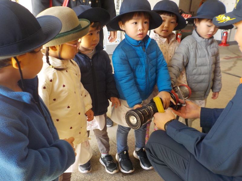 【消防車🚒】 水が出てくるホースの持ち手を持たせてもらいました!重たくてびっくり😲