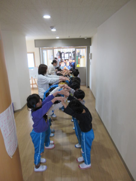 さくらんぼ組とひまわり組のお友だちがアーチを作ってお出迎え。