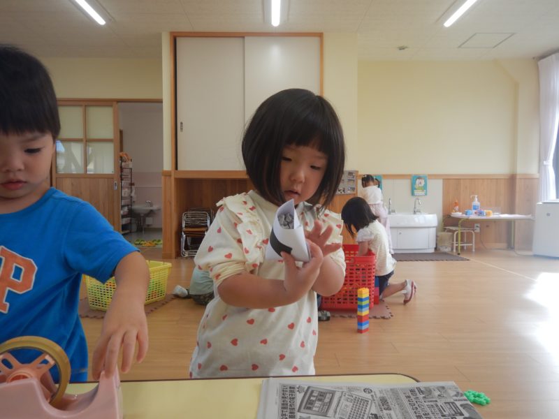 春は新しい環境の中、どんな遊びがあるんだろう…とお部屋の中を探検していました。子どもたちが見つけた遊びは__