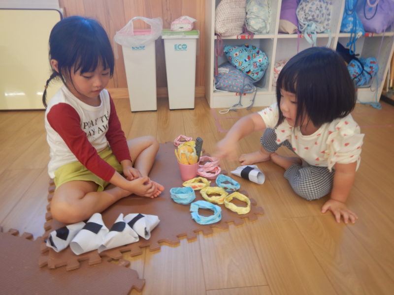 上のクラスのお友だちの真似っこをしてお家作りが大流行している中