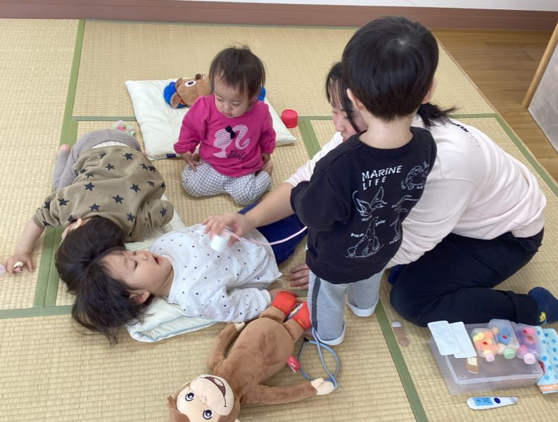 「おいしゃさんごっこ」お腹にポンポン