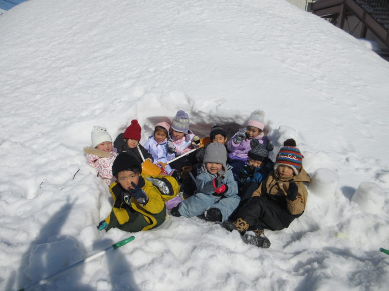 ひまわりさんは大きなかまくらを作りました!引き続き作って、もっと大きくしようね~♪