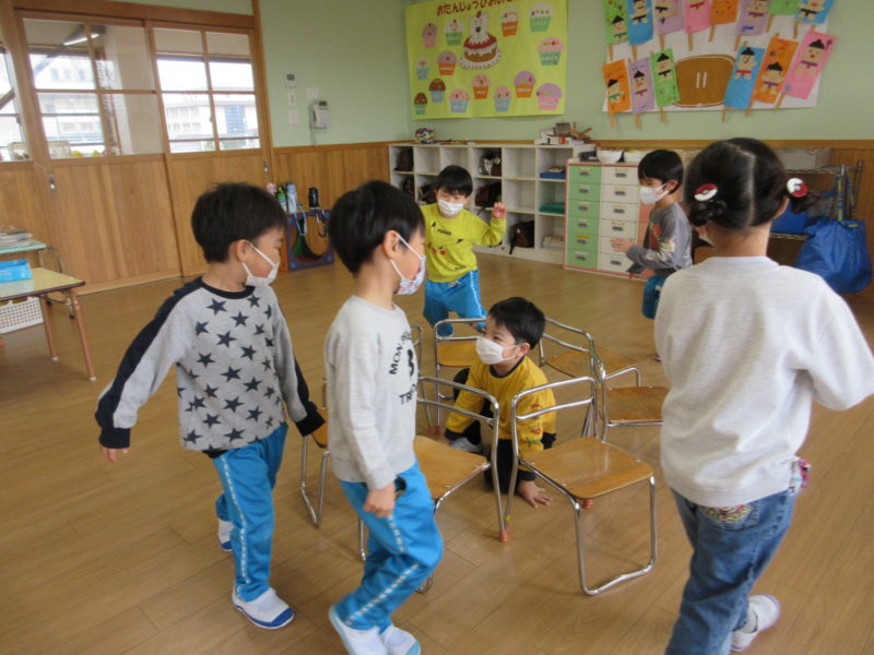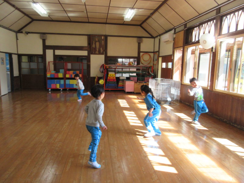 【4才児・ひまわり組】お部屋やホールで体を動かしてたくさん遊びました♪