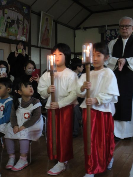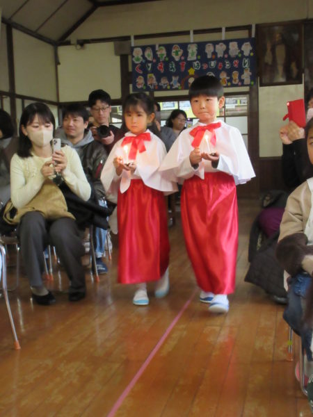 ゆり組さんはろうそくのを持って入場です。