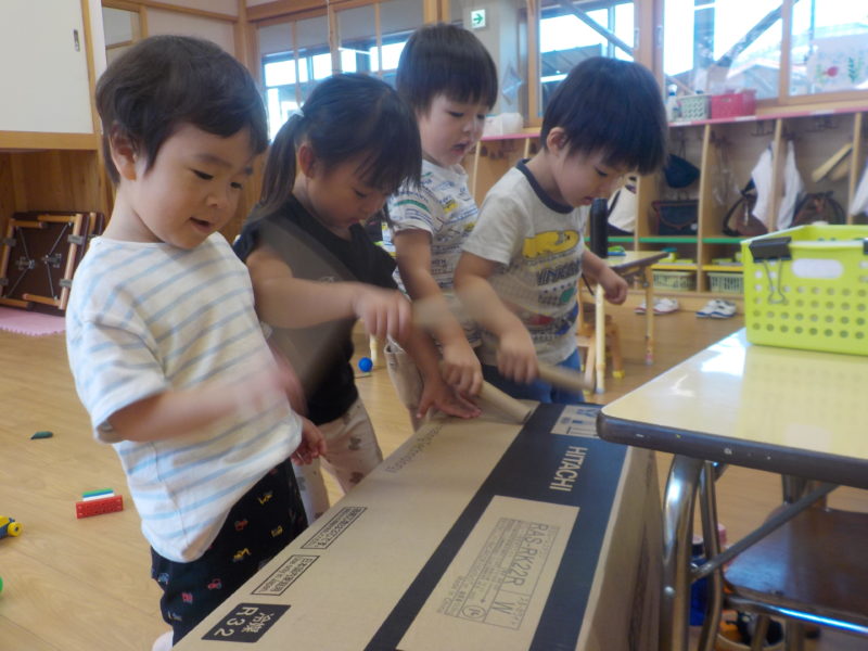2025年9月2日 / 最終更新日 : 2025年9月2日 momiji-site とことん日記 今日の様子 【2才児・いちご組】お部屋でゆっくり遊びました💕 電車のレールがつながった!! 段ボール箱をトントントン!!いい音が出たね🎵 【4才児・ひまわり組】広告で細い棒が出来ました!どんどんつなげて・・・ テントの枠組みが完成~!! 【今日の給食】 ゆかりごはん、五目ひじき煮、マカロニサラダ、オレンジ