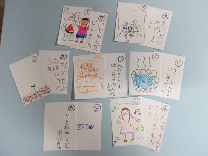【5才児・ゆり組】伝承あそびが大人気!!今日はカルタ作り。やるのが楽しみだね♪