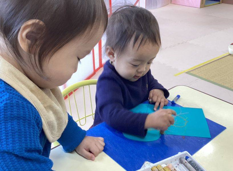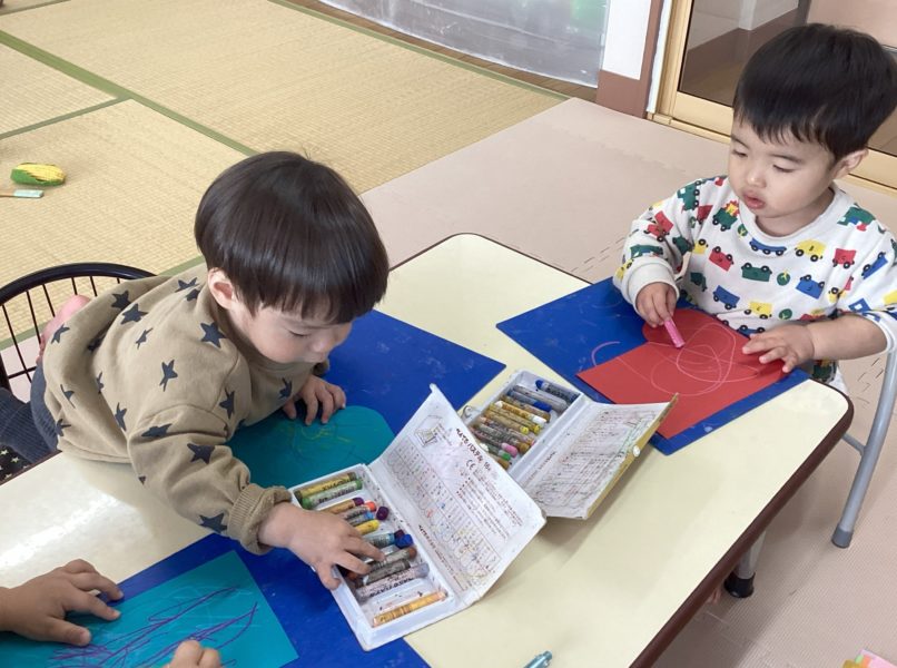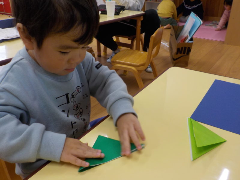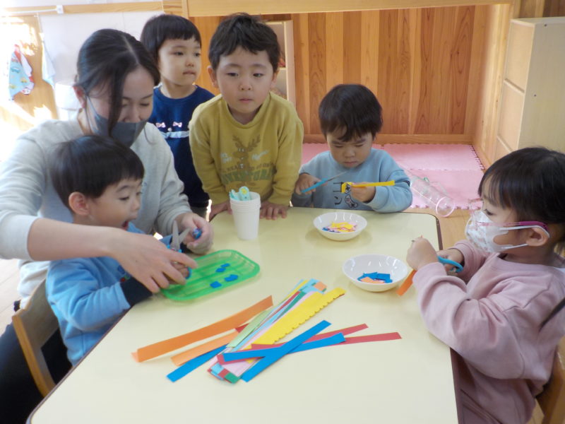 ハサミと折り紙に挑戦!!どちらも慎重に・・真剣な眼差しでした☺