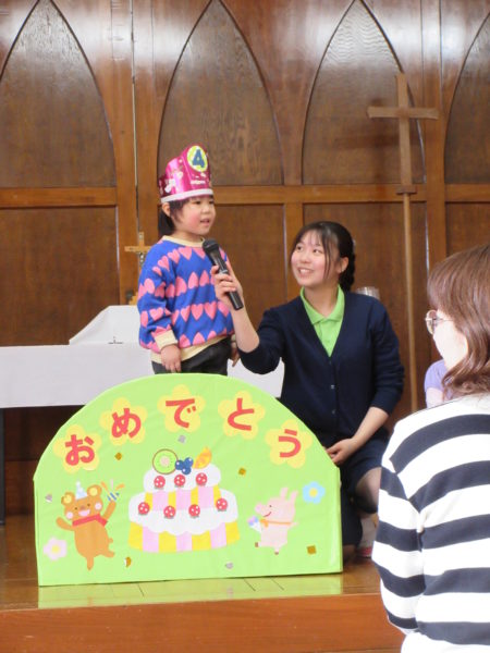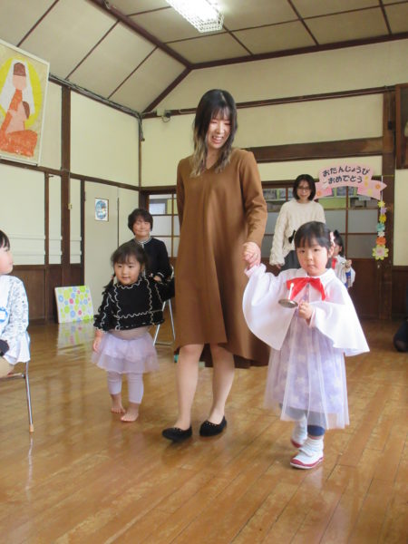【第2部:お祝いの会】未満児さんはお部屋でお祝いをします。